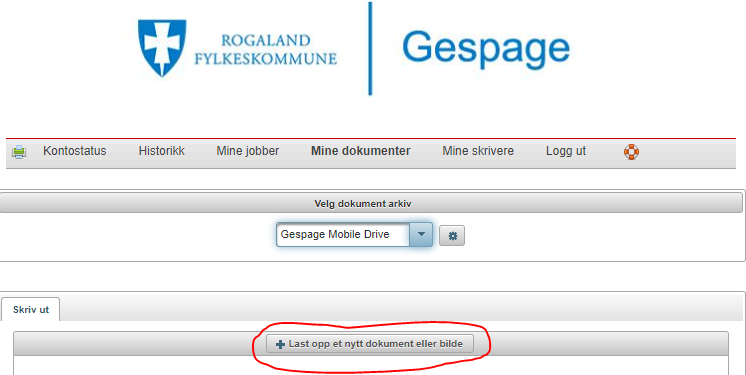Når du har logget inn trykker du på "Frigi" valget, velger det dokumentet du skal ha ut og trykker den blå knappen for starte utskrift.